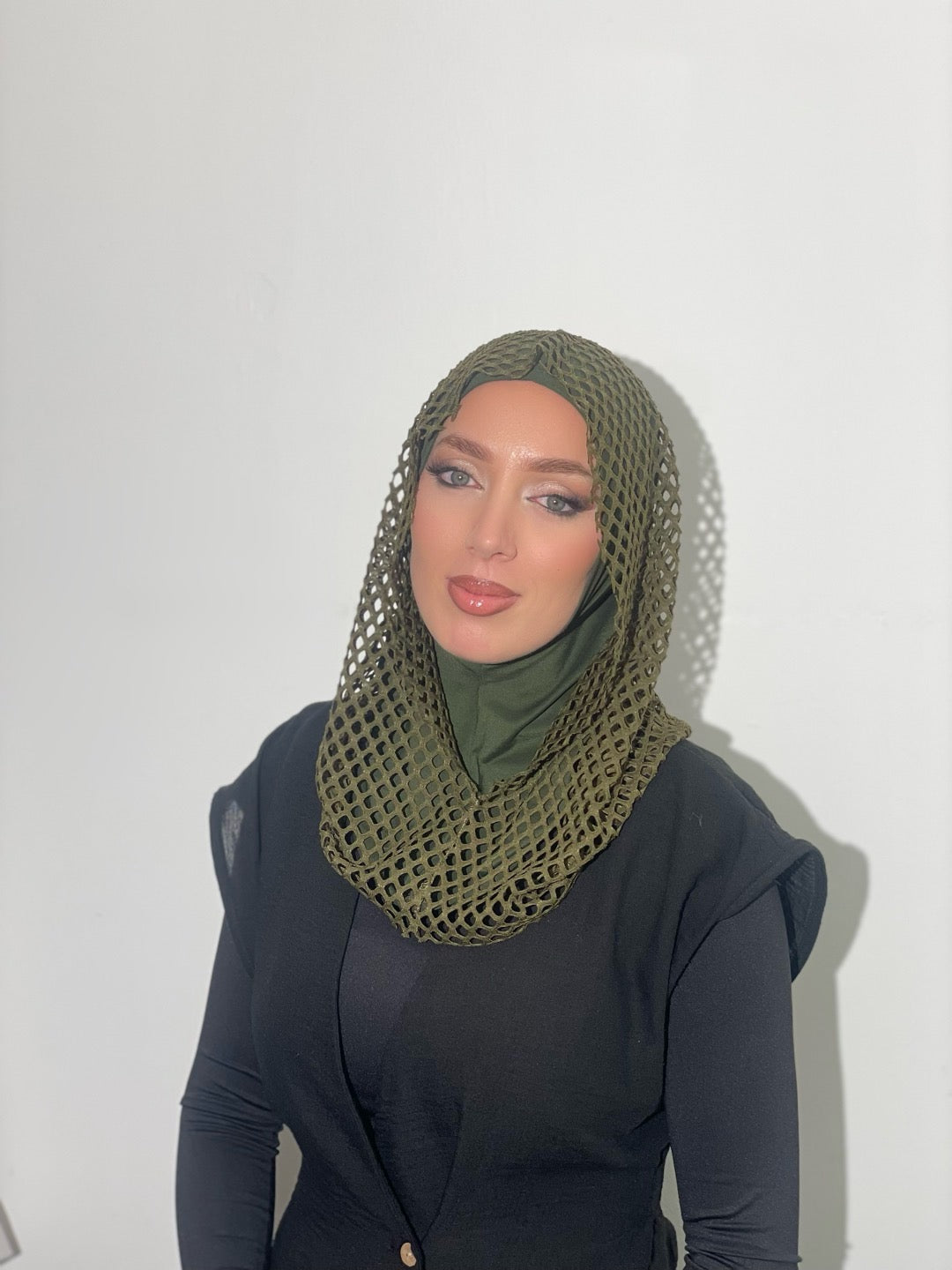 Une cagoule en jersey du Caucase + le filet qui est assortie.