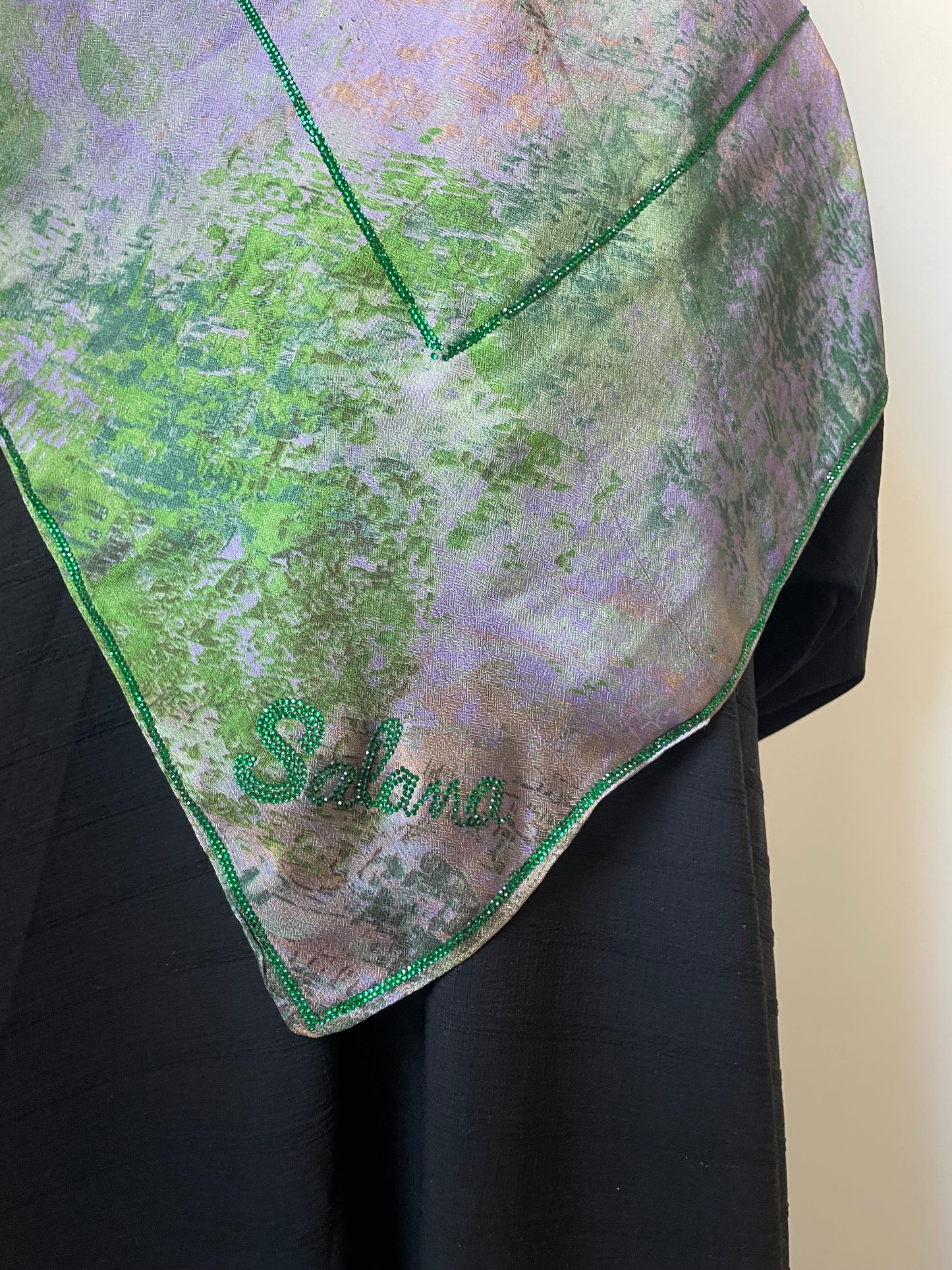 The scarves are delicately adorned with rhinestones, subtly arranged to enhance each model.
