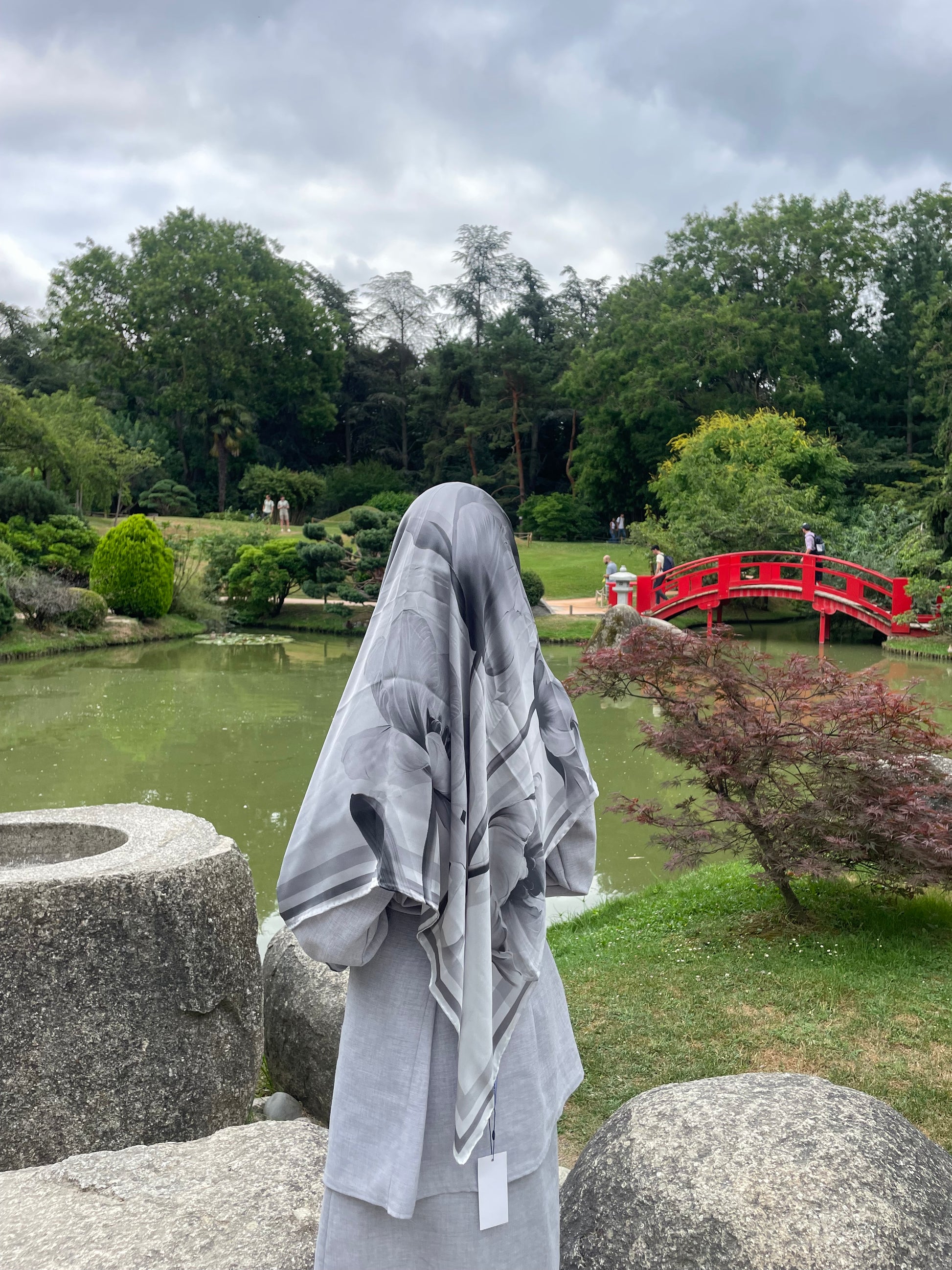 Ce foulard carré aux dimensions généreuses de 110x110 cm, douce, légère et délicieusement fluide. Il épouse chaque geste, glisse avec grâce sur la peau.
