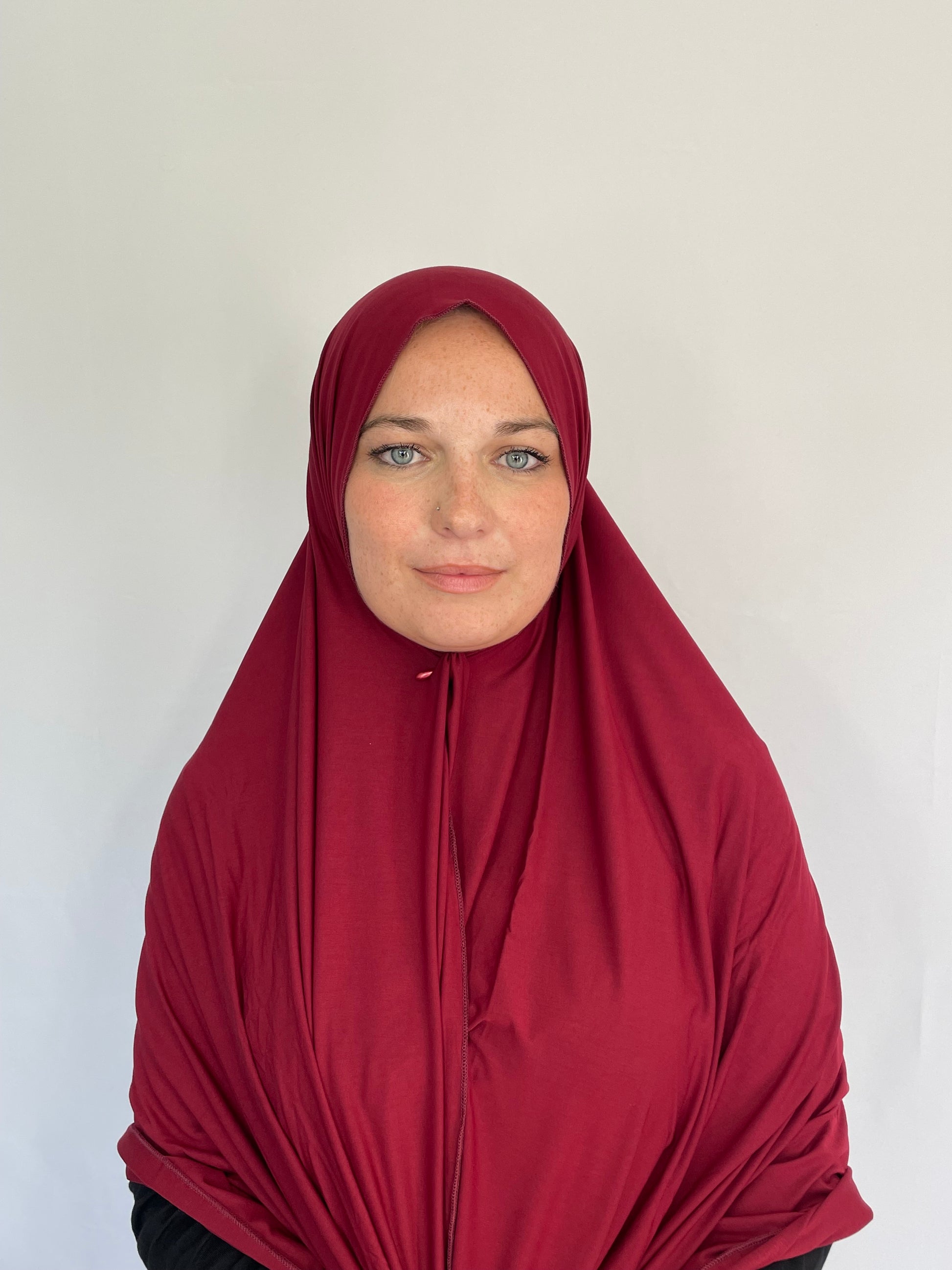 Les couleurs sont parfaitement assorties : chaque teinte porte le même nom car elle correspond exactement entre les cagoules, les hijabs en jersey du Caucase et les bonnets cache-dessous de menton. Une harmonie visuelle garantie grâce au même jersey premium, issu du même tissage.